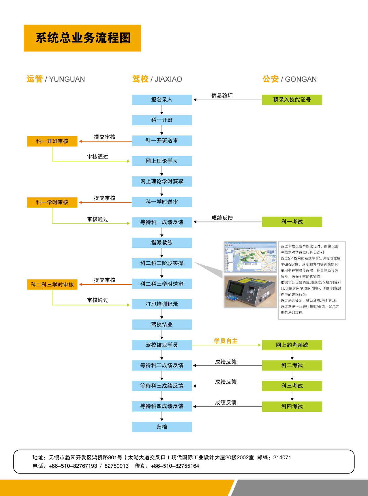驾驶培训智能化管理与服务系统是针对交通运输管理部门驾驶人学驾过程的一套智能化业务管理信息系统。本系统由学时管理及驾校业务管理、驾培过程动态监控、信息发布及公众服务、移动办公、数据交换与信息共享、系统服务及运行维护六大功能模块构成。实现学驾人、驾培机构、运管、公安考试部门及有关管理部门的信息共享、数据统计分析及拓展服务功能,对全省驾培行业的培训业务和服务质量实施即时高效的管理。支持手机和平板电脑等移动终端设备,实现移动查询及办公功能,利用驾培+互联网技术实现预约培训、先培后付等多种服务模式,提高学员、教练的用户体验度,建立双向评价体系,学员评价教练和驾校培训服务,教练评价学员的学习情况,让优秀的教练和信誉好的驾校获得较多的市场份额,学员得到人性化、优质的服务。